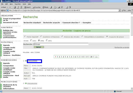 2002 et introduire le mot-clef "chômage". Voir écran ci-dessus.