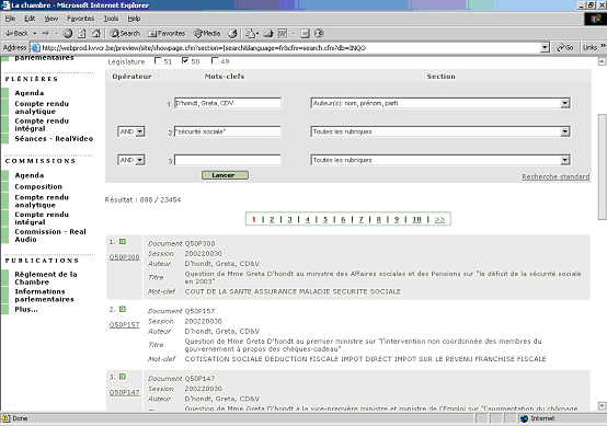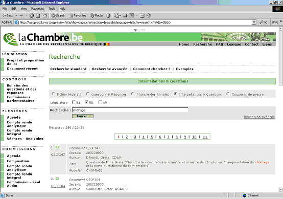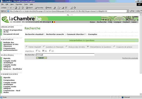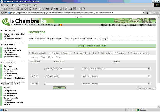 Sélectionner les options interpellations & questions et réponses et législature 50;