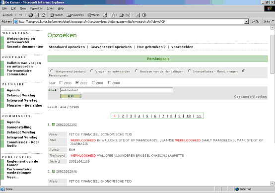 U wenst via Standaard opzoeken alle in 2002 verschenen persberichten met betrekking