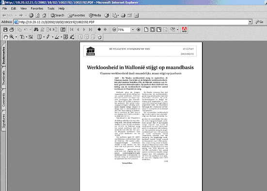 Het gevraagde persbericht verschijnt op het scherm. Zie bovenstaand voorbeeldscherm.