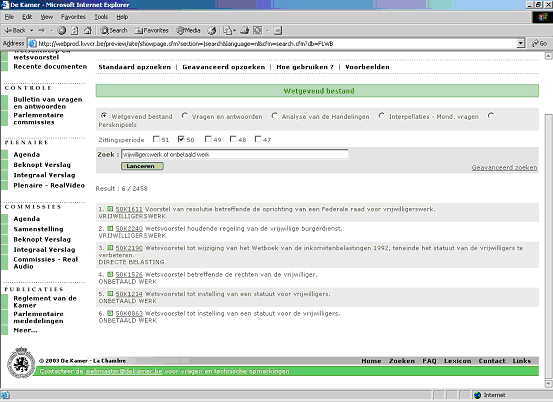 verzamelt de referenties naar alle tijdens de 50ste zittingsperiode in de databank