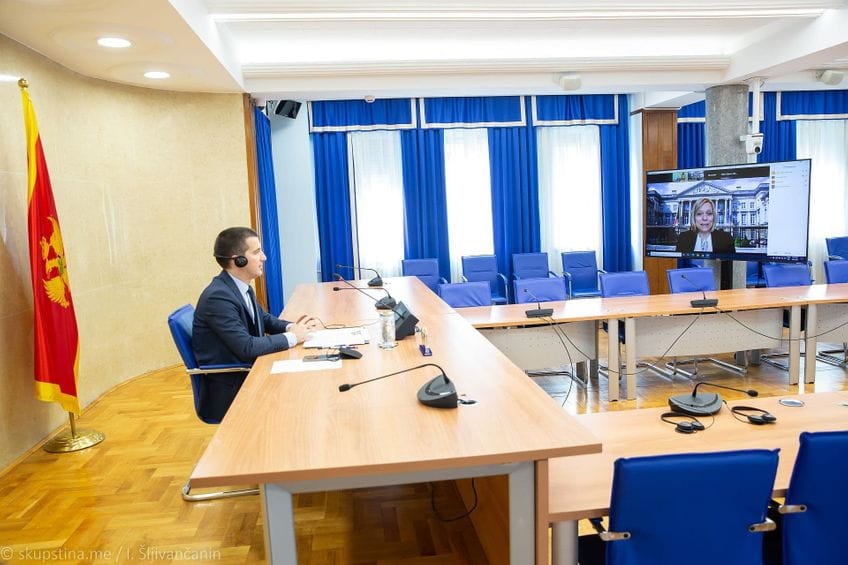 - 20 mei 2021: Kamervoorzitster Eliane Tillieux had een onderhoud via visioconferentie met de heer Aleksa Becic, voorzitter van het Parlement van de Republiek Montenegro. foto