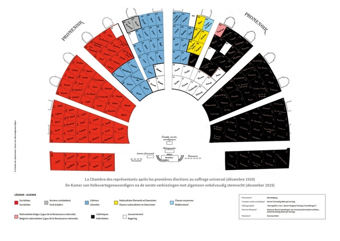 sièges dans l’hémicycle. Les partis catholiques et socialistes prirent place, comme